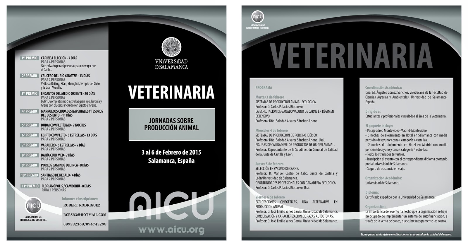 Martes 27 de Mayo de 2014 en el salón 3 de la Facultad de Ciencias Agrarias, en los horarios 12:30 del medio día y 16:30 pm se llevará a cabo una reunión explicativa con motivo de informar sobre los cursos de Agronomía y Veterinaria que se dictan en la Universidad de Salamanca en España en febrero de 2015. Dichos cursos se financian mediante sistema de rifas.